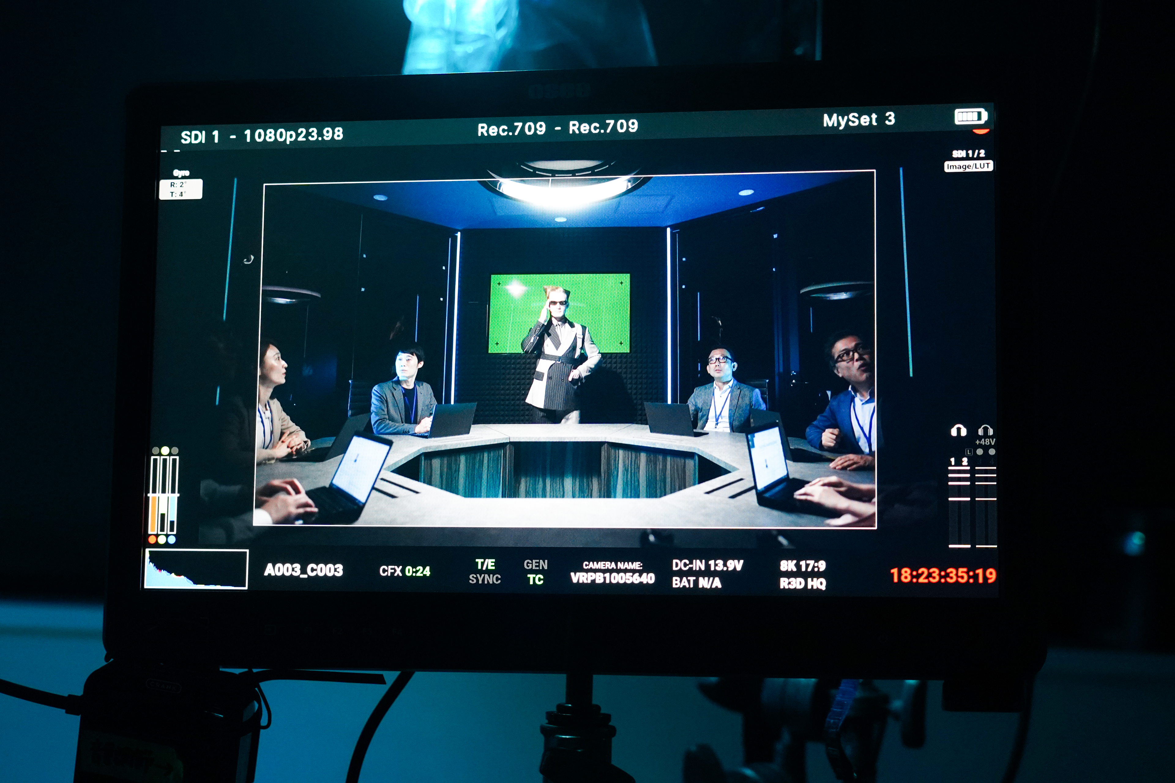ストーリーは、とある企業の採用会議に敏腕採用分析官である"ハイアー氏"の登場。それをきっかけに、採用会議中メンバーが会議室から近未来的な空間の”分析ルーム”に瞬間移動します。ロケ撮影は実在する2つのオフィスで行われました。前半パートを日中の一般的なオフィスの会議スペースを再現、後半パートは近未来的なデザインのオフィス会議室にライティングやCGでの後処理の演出を追加することで、現実離れした空間を作り上げていきました。