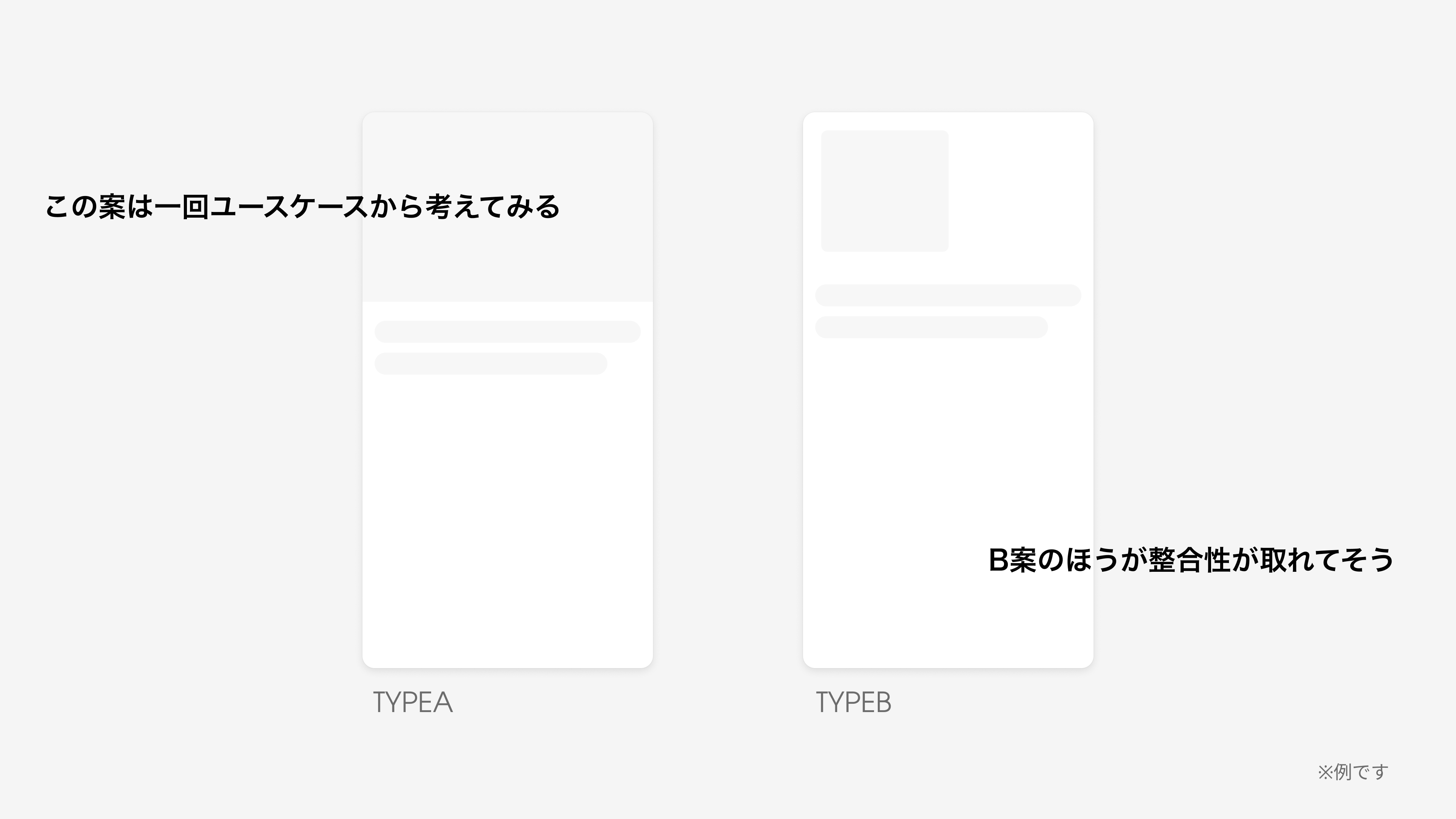 「この案は一回ユースケースから考えてみる」「A案のほうが整合性が取れてそう」